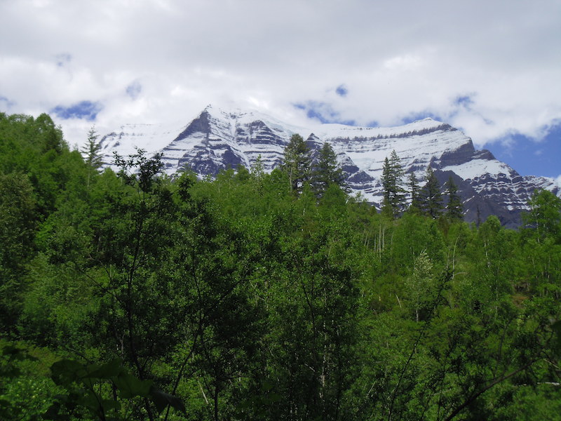 Am Mount Robson, einem knapp 4000 Meter hohen, schneebedeckten Berg wanderten wir die ersten Kilometer auf dem Berg Lake Trail dem Fluss entlang durch den Wald. Je näher wir dem Gebirge kamen desto grösser und wuchtiger wurden die Zedernbäume.