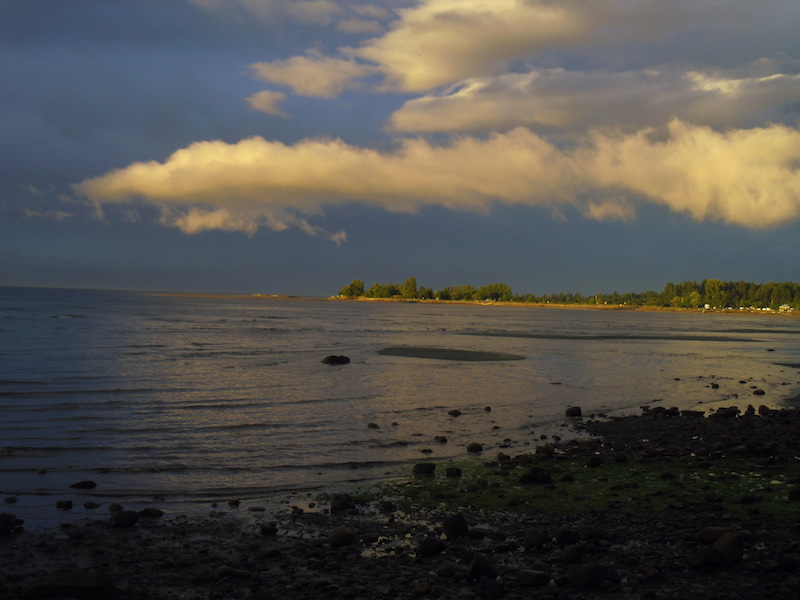 Nach einer 1 1/2 stündigen Überfahrt waren wir in Nanaimo auf Vancouver Island angekommen. Die Insel empfing uns so, wie wir das Festland verlassen hatten, mit Wolken und teilweise Regen. Wir fuhren gleich los, nordwärts bis nach Parksville. Hier haben wir einen kleinen Campingplatz direkt oberhalb des Strandes gefunden. In dieser Umgebung soll der Tidenhub besonders ausgeprägt sein. Bei unserer Ankunft war gerade noch Ebbe und grosse Teile der vielen Buchten bis weit hinaus begehbar. Abends, als wir uns für die Nacht auf dem Standplatz einrichteten, hatte die Flut wieder eingesetzt und bedeckte immer grössere Teile des Strandes. Wie wir das schon von Osoyoos kannten, gab es einen kräftigen Regenguss, bevor sich die Sonne nochmals vor dem Eindunkeln versöhnlich zeigte.