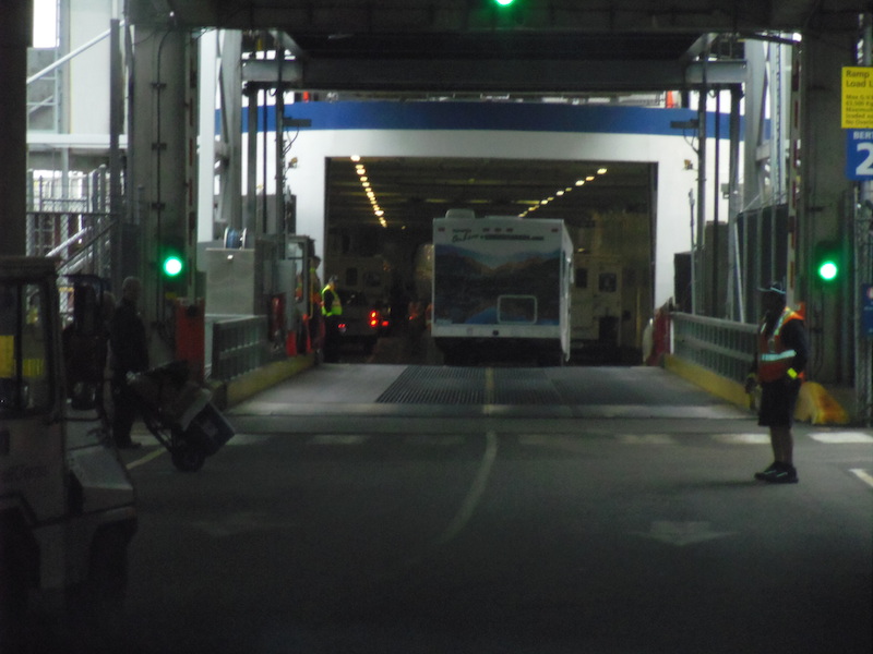 Wir brauchten viel Geduld, bis wir endlich auch grünes Licht bekamen, um unser Wohnmobil in den Bauch des Giganten zu manövrieren (was Hajo einmal mehr bestens im Griff hatte). Wir stiegen aus und kletterten die vielen Stufen auf das Passagierdeck hoch. Kurz nach der Abfahrt verschwanden unsere Kinder in der Kids Zone. Neben einer kleinen Rutschbahn gab es ein am Boden fixiertes Auto, welches Flurin gleich in Beschlag nahm. Als ein anderes Kind sich darauf setzte, hockte er sich stramm vor das Kind auf die Knie, schaute es mit grossen Augen bestimmt an und meinte „ich, au Auto ha“! Manchmal kam ihm Alina zu Hilfe, welche sich konsequent für ihren Bruder einsetzte (und kaum ihr Ziel erreicht, sich selber darauf setzte).