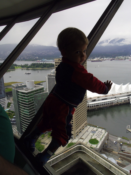 Eine Lokomotive rangierte im nahen Bahnhof, etwas, was Flurin sehr interessierte. Und natürlich die Wasserflugzeuge, die auf dem Meeresarm starteten und landeten. Gleich um die Ecke konsumierten wir in einem kleinen Restaurant einen Znacht, bevor wir uns auf den Weg zurück zum Hotel machten. Zum Glück war das Wetter wieder etwas angenehmer und wir liefen zum Canada Place, wo die grossen Kreuzfahrtschiffe anlegen und von dort dem Ufer entlang zu unserem Hotel. Dort angelangt erhielten wir unser Zimmer im 14. Stock im Turm des Gebäudekomplexes mit seitlichem Blick auf den Stanleypark und einen Bootshafen mit vielen kleinen Schiffen. Nach einer erholsamen, verdienten Dusche besprachen wir noch den Folgetag und legten uns nur noch ins Bett.
