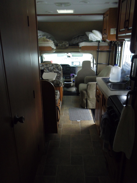 Auf den Strassen war noch nicht viel Betrieb und grosse Anzeigetafeln am Highway informierten darüber, dass sämtliche Fähren pünktlich unterwegs sind und unsere erst zu 50% ausgebucht. Vor dem einschiffen blieb uns gerade noch Zeit, den Kindern ihre Morgenmilch zuzubereiten und Flurin, der noch im Pyjama mitfuhr, tagbereit zu machen.