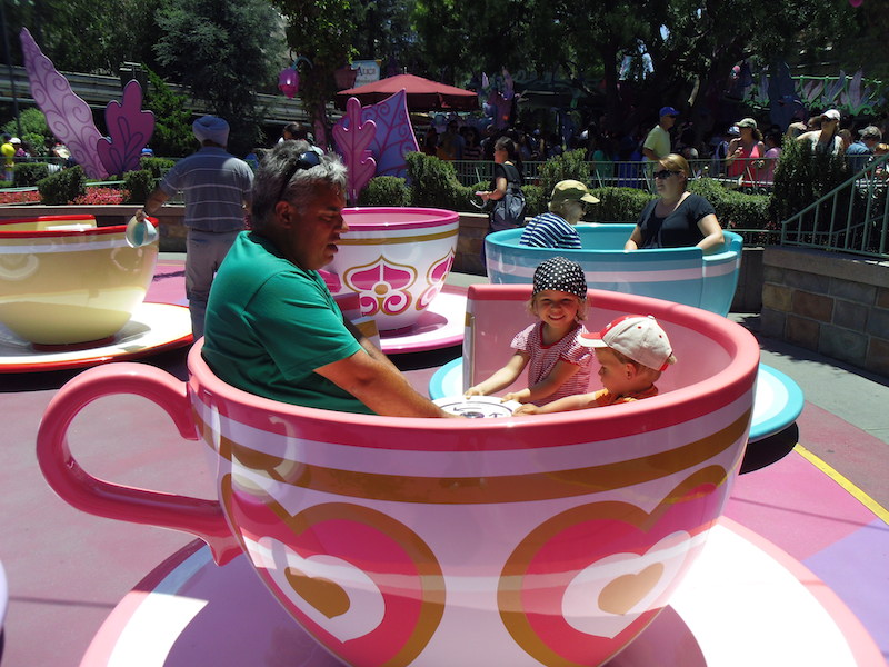 Auf der ersten Bahn, der Astro Orbitor im Tomorrowland legte ich mit Alina und Flurin – zur Freude beider - unsere ersten Runden zurück. Anschliessend fuhren wir alle zusammen in kleinen Fahrzeugen durch Alice in Wonderland bevor wir in riesigen Teetassen der Mad Tea Party sitzend im Kreise herumgewirbelt und gedreht wurden.