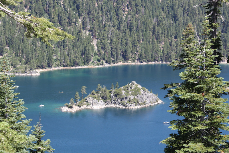 Vorbei an der kleinen, sehenswerten Insel fuhren wir bis nach Tahoe Vista, wo wir uns im Shopping Centre mit Picknick eindeckten. Mit viel viel Glück bekamen wir einen Parkplatz an einem tollen Strand gleich gegenüber: eine wunderbare (Krabbel)Wiese für Flurin, davor den Sandstrand direkt zum See. Das Wasser war erstaunlich warm und Alina sprang gleich ins Wasser um zu schwimmen.