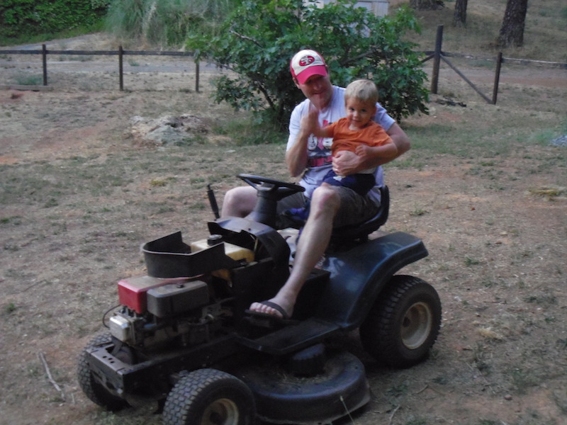 Wir freuten uns riesig, Teenager Gabriel und Baby Phoebie zu sehen. Gabriel überliess uns grosszügigerweise sein ganzes Zimmer. Kurze Zeit später kam Curt mit einem Stapel Pizzas von der Arbeit nach Hause. Nach einem gemütlichen Abendessen gemeinsam bei Tisch und erstem Austausch von Neuigkeiten begaben wir uns in den Garten. Gabriel begleitete unsere Kinder auf das grosse Trampolin wo sich alle austoben konnten und mächtig Spass hatten. Flurin hatte bald den Mähtraktor entdeckt und überzeugte Curt, ein paar Runden drehen zu dürfen.