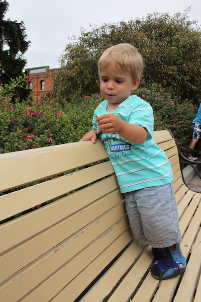 Zurück beim Cable Car sollte es uns nicht anders gehen als am Morgen, auch hier mussten wir wieder lange Wartezeiten in Kauf nehmen. Ich hatte das Privileg, mit Flurin auf einem Bänkli zu warten, auf dem er sich kräftig austobte und das herumkrabbeln und aufstehen genoss, während Hajo in der Schlange den Platz hielt.