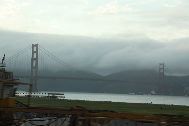 Endlich im Cable Car – dieses Mal konnten alle draussen auf der Bank Platz nehmen, Alina gar an forderster Front - dauerte die Fahrt allerdings nur bis zum übernächsten Häuserblock, dann kam das Gefährt zu einem abrupten Stopp. Das Seil, an welchem die Cable Cars durch die Stadt gezogen werden, stand still. Wir mussten abwarten, bis irgendwann die Cables wieder in Bewegung waren. Aber auch dann blieben wir stehen, denn unser Wagen konnte nun nicht mehr anfahren und wir mussten Hilfe von einem Lastwagen mit Pflug abwarten, der uns wieder anschieben musste. Die Fahrt (und die Warterei) zog sich dahin, auch ein Fahrerwechsel wurde in aller Ruhe noch vorgenommen, und mittlerweile taten uns nicht nur die Beine sondern auch der Allerwerteste weh. Wir waren richtig erleichtert, als wir endlich wieder an der Market Street ankamen. Wir begaben uns noch auf eine kurze Shoppingtour in den umliegenden Läden, wobei insbesondere Alina für Aufregung beim Sicherheitspersonal sorgte. Hajo hatte im zweiten Obergeschoss eine Shorts gefunden, eine Kasse gab es allerdings auf dem Stockwerk nicht. Da Buggys auf der Rolltreppe nicht erlaubt sind, fuhr ich mit Flurin im Lift ins Parterre um dort auf Hajo und Alina zu warten. Hajo hatte im ersten Stock eine Kasse gefunden und stellte sich hinten an. Um uns über ihren Verbleib zu informieren schickte er Alina die Rolltreppe hinunter, um gleich danach wieder zu ihm zurück zu kehren, falls sie uns nicht finden sollte, damit sie nicht alleine herumstehe. Das Sicherheitspersonal hatte allerdings Alina gleich entdeckt und begann wild mit anderen Beschäftigten im Haus hin und her zu funken. Schnell hatte ich verstanden, dass die Unruhe mit Alina zu tun hatte. Während ich dem Herr erklärte, dass dies meine Tochter sei, rief Alina mir kurz zu, dass Papa im 1. Stock an der Kasse bezahle, anschliessend runter komme und sie nun wieder zu ihm zurück müsse. Schon war sie wieder auf der Rolltreppe nach oben. Ich versuchte den Mann zu beruhigen und sagte ihm, dass Hajo oben bezahle (worauf der wieder meinte, hier unten hätte es auch Kassen), Alina mich nur hier unten über ihren Verbleib informierte und dass sie wie mit Papa vereinbart wieder zu ihm hoch müsse und genau wisse, wo sie ihn fände. Mittlerweile kam Hajo mit Alina und dem zweiten Mann, sogar einem Uniformierten, die Rolltreppe hinunter und wir versuchten die aufgebrachten Männer wieder zu besänftigen. Nachdem wir ein weiteres Mal klar gestellt hatten, dass Alina unsere gemeinsame Tochter sei, sie uns kenne und alles richtig gemacht habe, beruhigten sich ihre Gemüter und sie liessen uns ziehen. Wir machten uns schnell aus dem Staub und begaben uns zurück ins nahe gelegene Parkhaus. Den Weg zurück fuhren wir über mehrere Stadt-Hügel und anschliessend via die Golden Gate Bridge (das einzige Mal, dass wir die Brücke von dieser Seite her befahren würden).