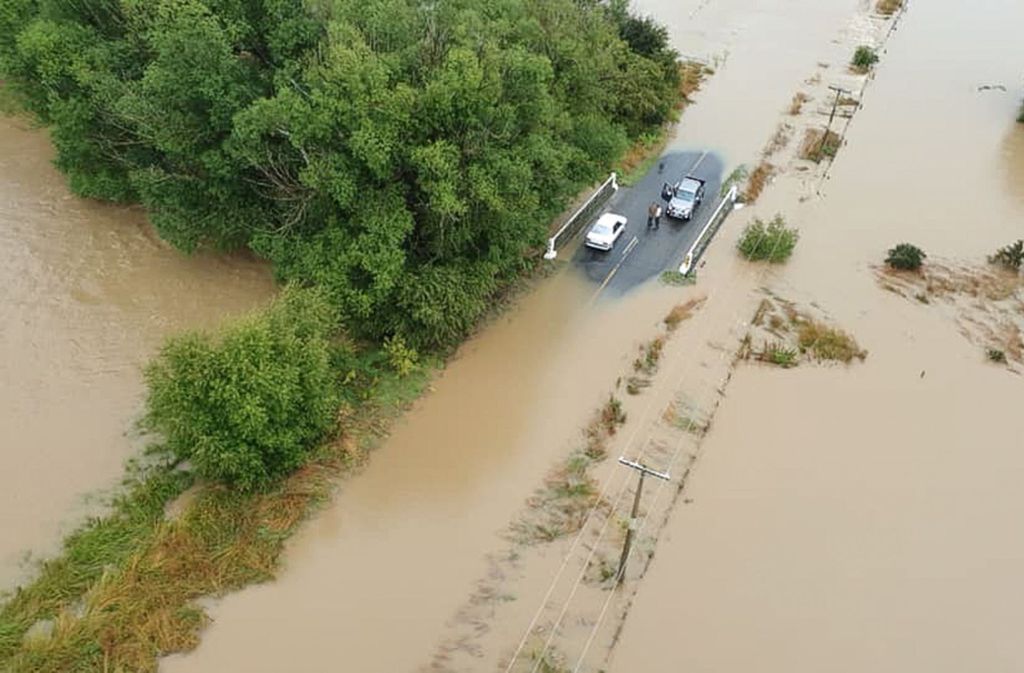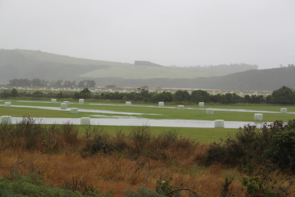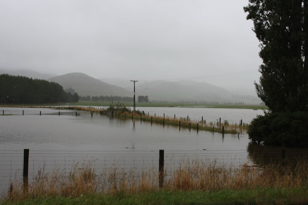Leider dauerte unsere Anfahrt effektiv fast doppelt so lange. Unterwegs fuhren wir an reissenden Bächen vorbei, die längst ihr gewohntes Bachbett übertreten hatten. Auf den Feldern waren grosse Wasserpfützen oder gar kleine Seen entstanden, manche Nutztiere (Kühe, Schafe und Hirsche) weideten im Wasser stehend. An einer Strassenkreuzung stand eine Absperrung und die Leuchttafel informierte darüber, dass die Strasse nach Queenstown gesperrt sei. Zwar nicht unser heutiges Tagesziel, aber eine Stadt, die in ein paar Tagen auf unserem Programm stand und wo wir endlich das längst versprochene Paket an Hilfsmitteln für Flurin bekommen sollten. Auf unserem Weg folgten schliesslich mehrere Stellen, wo das Tempo infolge Flooding gedrosselt werden musste. Als wir an einem Rastplatz kurz eine Verschnaufpause einlegen wollten, hielt kurz darauf ein Einheimischer neben uns an. Er informierte uns, dass hinter dem Damm ein Fluss verläuft und wir uns hier in unmittelbar durch Überschwemmungen bedrohten Gebiet befinden würden. Wir sollten den Platz besser verlassen und im nächsten Dorf anhalten. So langsam war uns nicht mehr wohl.
