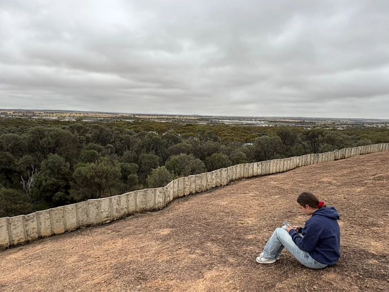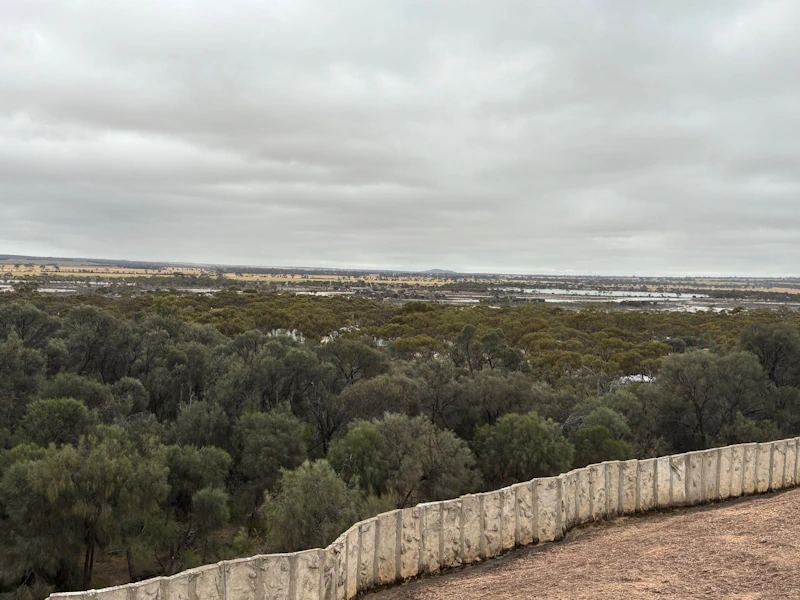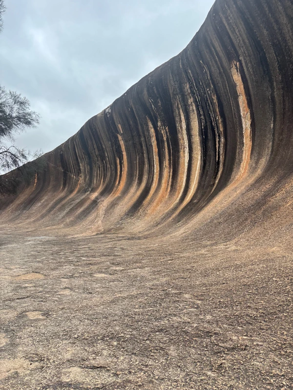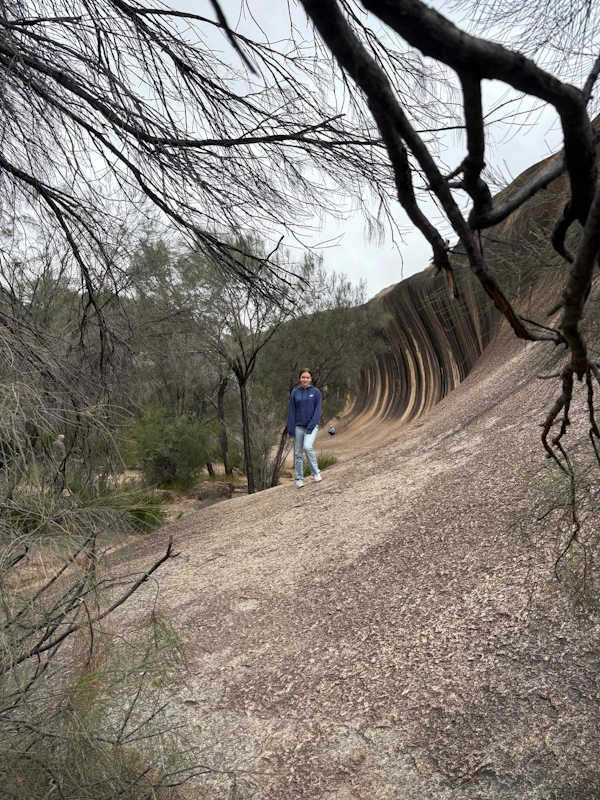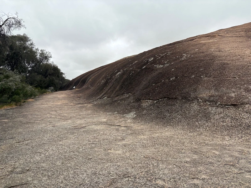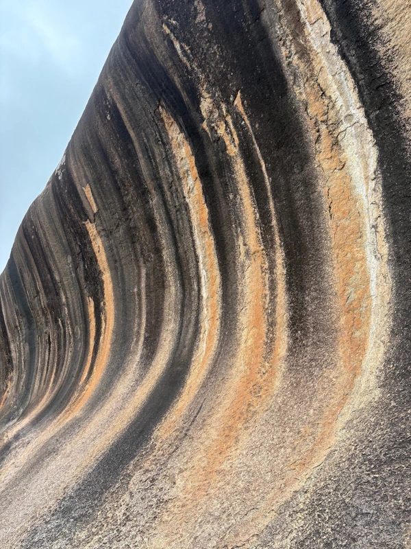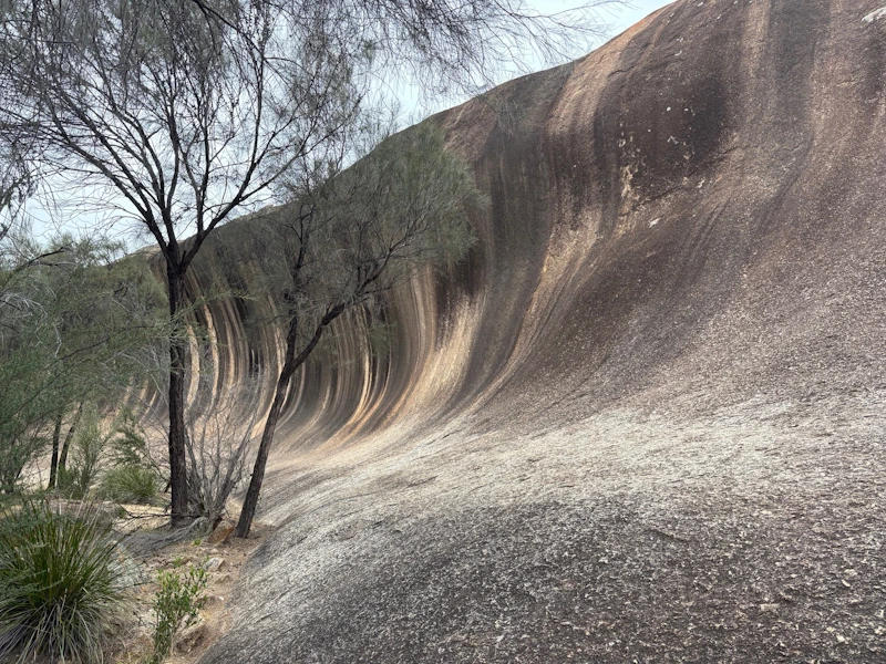 Nachdem wir die Campervermietung per E-Mail über die Mängel informiert hatten parkierten wir unser Wohnmobil ausserhalb des Campingplatzes und machten uns auf, den nahe gelegenen Wave Rock zu erkunden. Sehr eindrücklich, wie mitten im Outback eine riesige Welle mit entsprechenden Mustern sich vor einem aufbaut. Über eine Treppe gelangt man sogar auf den Peak der Welle, von wo aus man einen schönen Ausblick auf die Umgebung hat. Um Niederschläge zu sammeln und in das nahe Staubecken zu leiten wurde extra ein (hässliches) Mäuerchen auf dem Rock errichtet. Wie bedauerlich.
