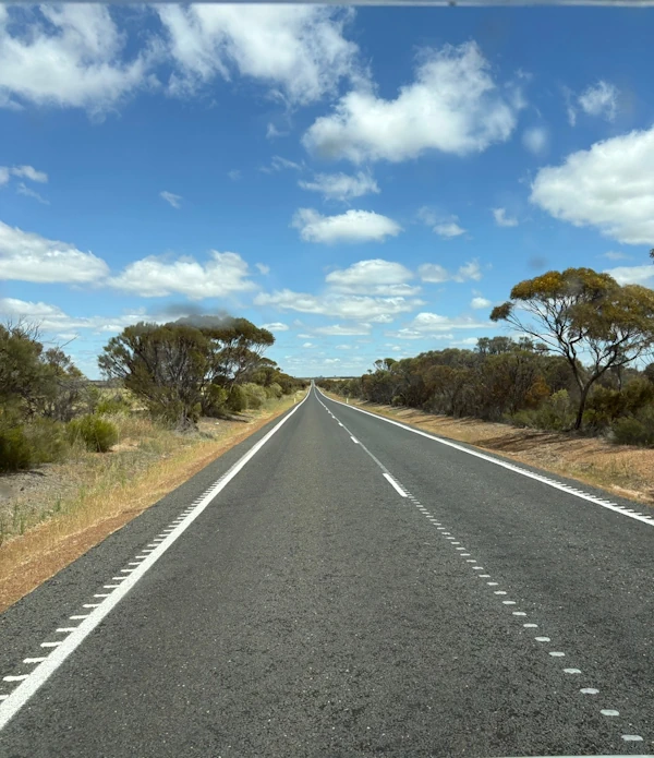 Unterwegs Richtung Perth kreuzten ein paar grössere Echsen die Strasse. Die Strecke war kurvenreicher und Lastwagen zu überholen brauchte jedes Mal Überwindung. Ein Fahrzeug fuhr mir entgegen, das mich vor einem oversized Fahrzeug warnte. Kurz darauf folgte ein Polizeifahrzeug, das mich mit allen Mitteln: Sirene, Lichthupe und Blaulicht warnte und an den Strassenrand schickte. Ich bremste und fuhr von der asphaltierten Strasse ins Kies, was auch nötig war, denn es donnerte wirklich ein Riesen Vehikel vorbei, welches 3/4 der Strasse in Anspruch nahm.