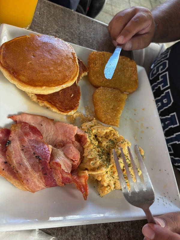 Ein bisschen shoppen war angesagt, letzte Souvenirs besorgen und ein ausgiebiges Frühstück mit Pancakes, Bacon, Eggs, und Hashbrown, das wir uns schon länger vorgenommen hatten. Aufgrund des guten Internetzugangs haben wir gleich noch den Check-in für die Reise nach Singapore vorgenommen, die Einreisekarten ausgefüllt und Datenvolumen für Singapore gekauft.