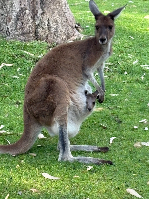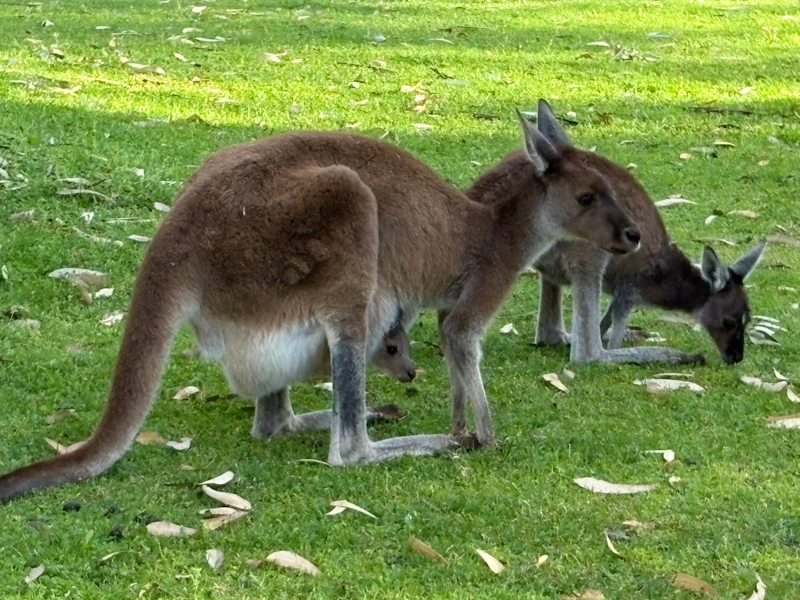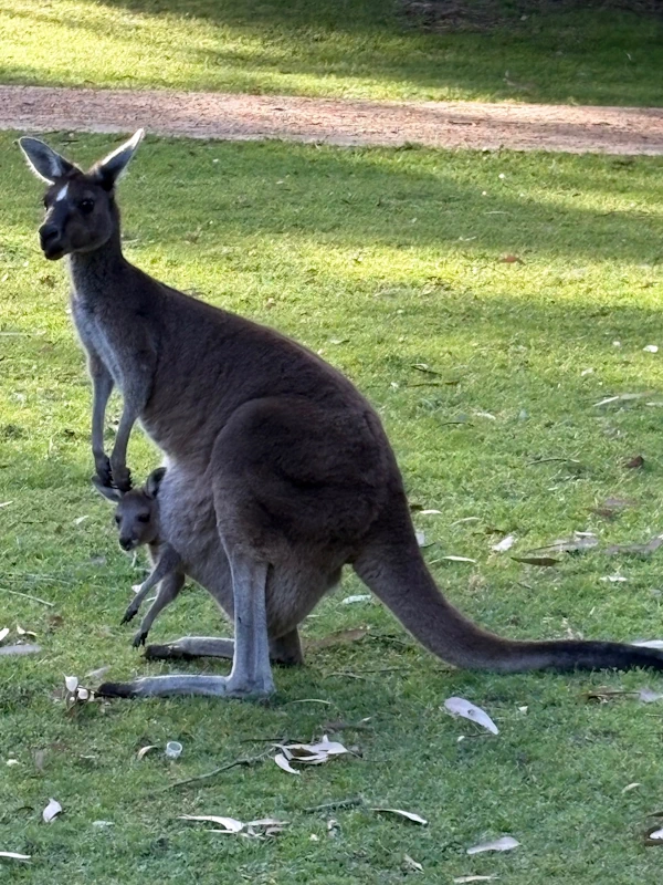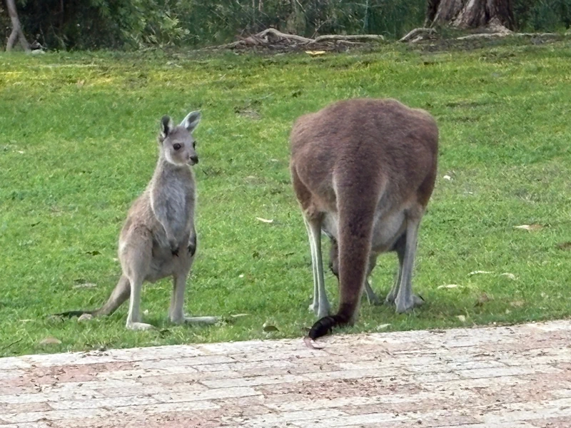 Noch gut genährt von unserem ausgiebigen Frühstück genossen wir einen kleinen Snack und schauten dabei den Kängurus, den Krähen und dem Kokaburra zu.