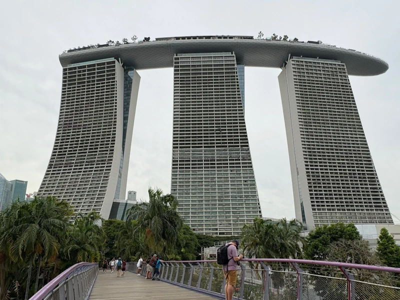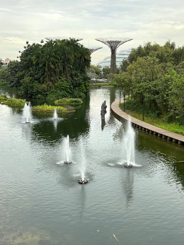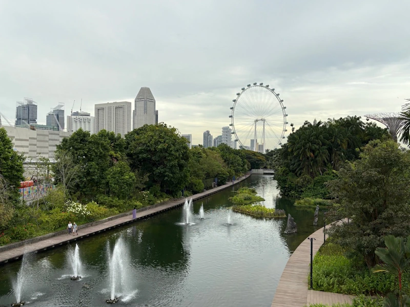 Es ist kaum möglich, die weitläufige 101 Hektar große Fläche direkt am Wasser in der Marina Bay zu übersehen. Zwei große, futuristische Gebäude erheben sich aus dem Grün der Gardens by the Bay, die mit Blick auf ökologische Nachhaltigkeit konzipiert wurden.