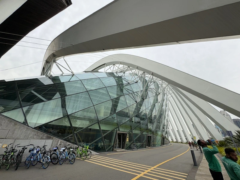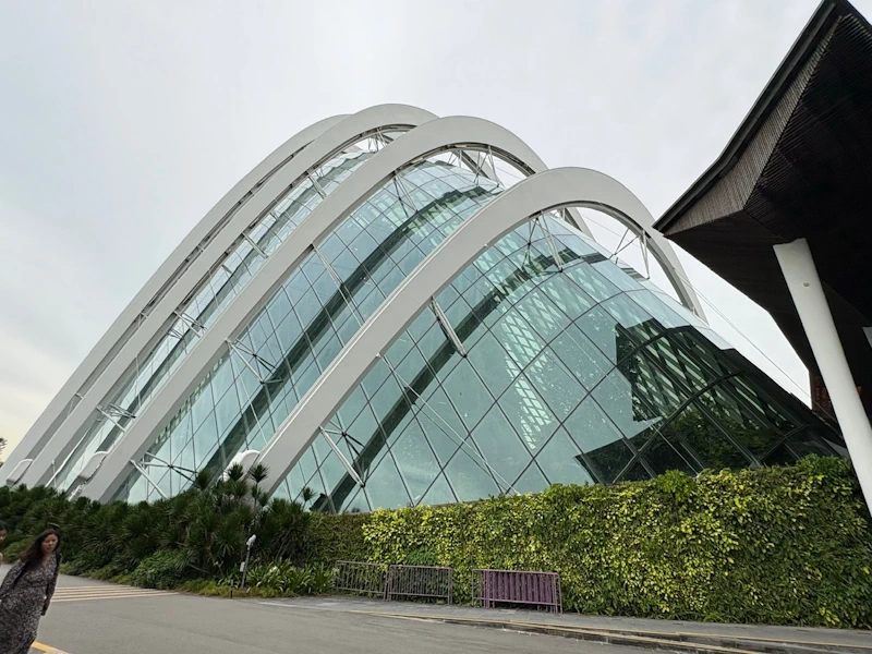Es sind der Flower Dome und der Cloud Forest - ein gekühltes Gewächshaus, das es 2015 ins Guinness-Buch der Rekorde geschafft hat als das größte gläserne Gewächshaus der Welt. Die freistehenden und freitragenden Glasdächer umschließen riesige Flächen, ohne dass Säulen oder Pfeiler das Bild stören würden.