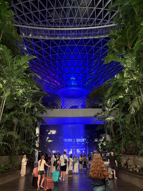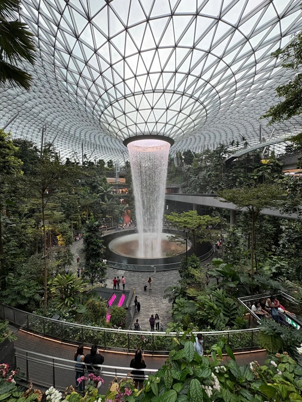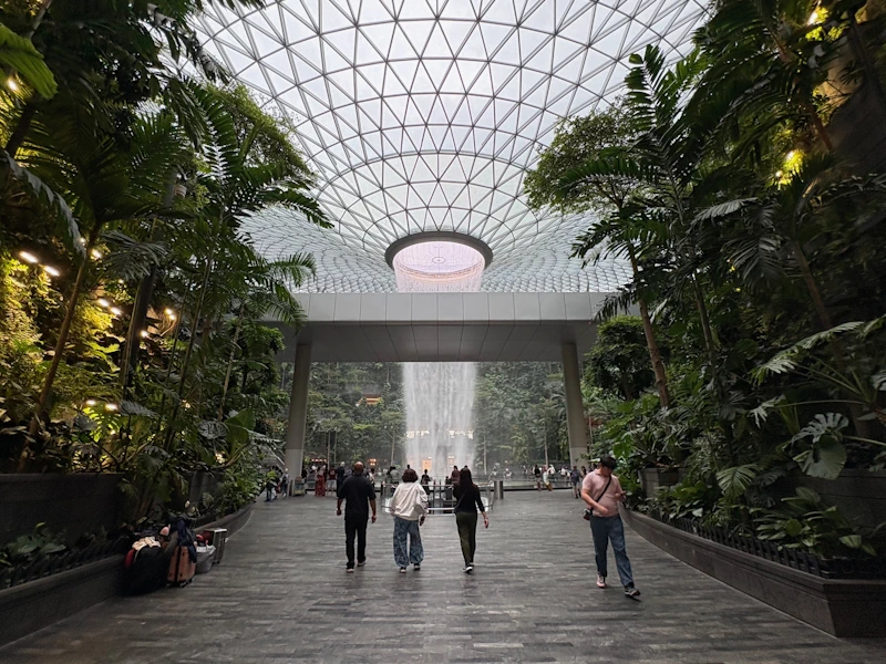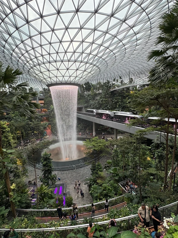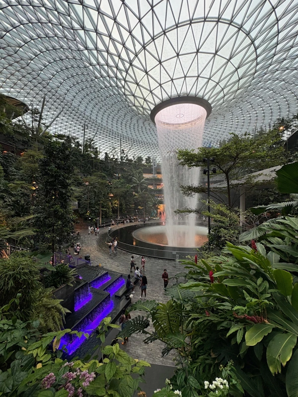 und einem zentralen, futuristischen Gebäude namens Jewel Changi Airport, das als