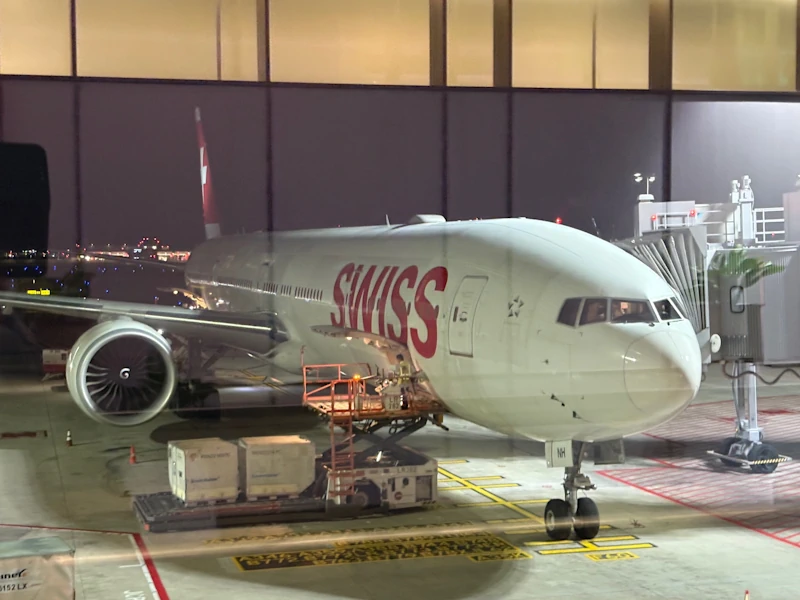 Wir durften mit den ersten Passagieren einsteigen. Die Boeing 777 der Swiss war allerdings nicht ausgebucht und es gab diverse freie Plätze, teils blieben ganze Reihen leer. Da wir nur einen Fensterplatz hatten erkundigte sich Alina bei der Flugbegleitung, ob sie auf einen freien Sitz am Fenster wechseln darf, dies wurde ihr aber erst nach dem Start erlaubt. Die Piloten hatten es auch eilig und informierten die Crew über die kurze Taxi-Zeit.